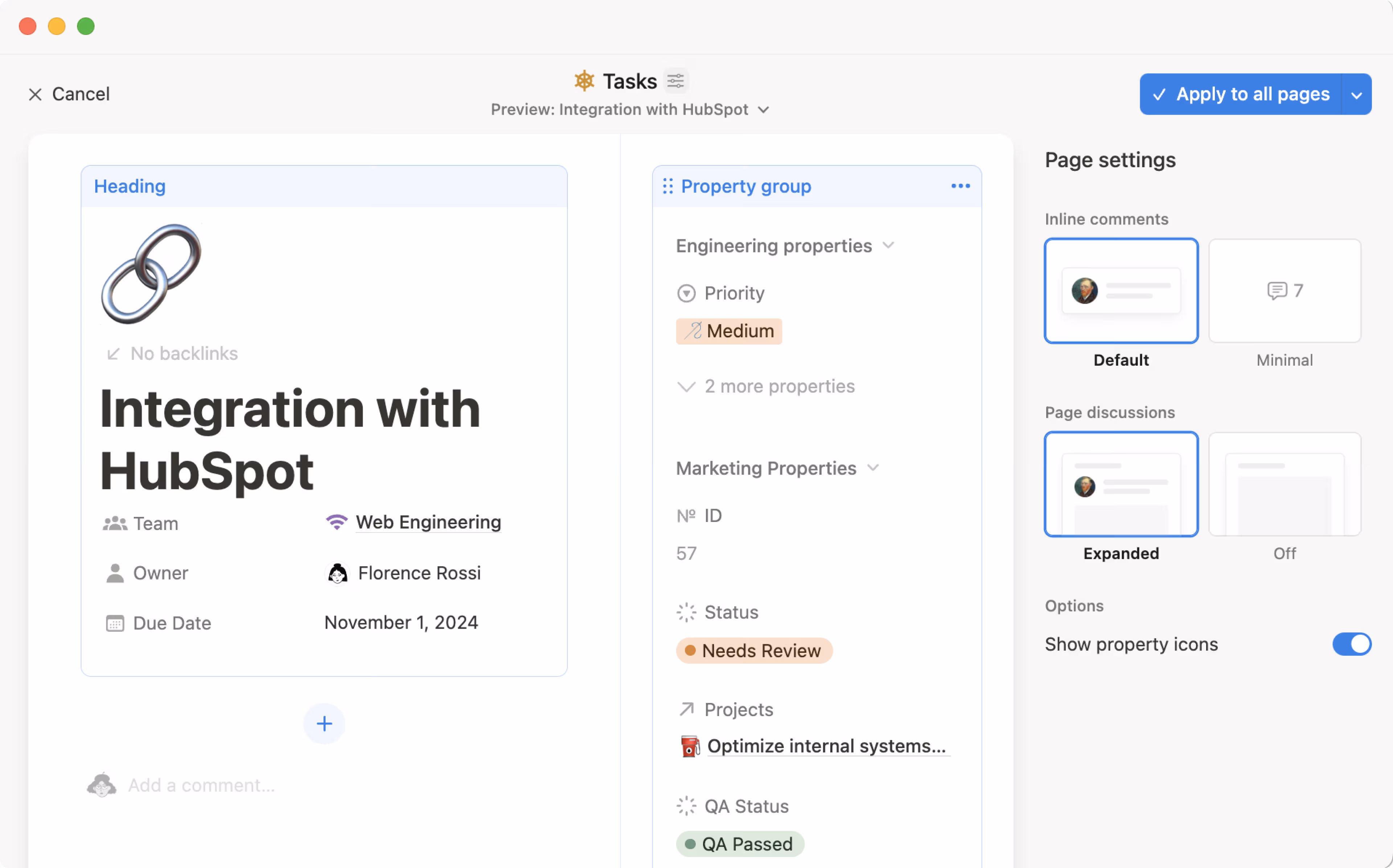 Ajouter une propriétéou+à côté de la propriété la plus à droite.Dans le menu qui s’affiche, sélectionnez